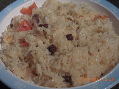 - Add tomato, salt, rice and water (in which rice was soaked).
